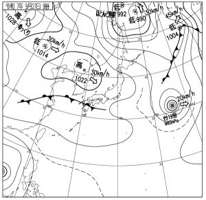北日本は気圧の谷が通過して雨雲が発達し、東北や北海道で激しい雨。