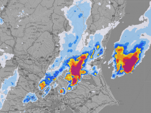 都心でも雨雲が発達して局地的にゲリラ雨。