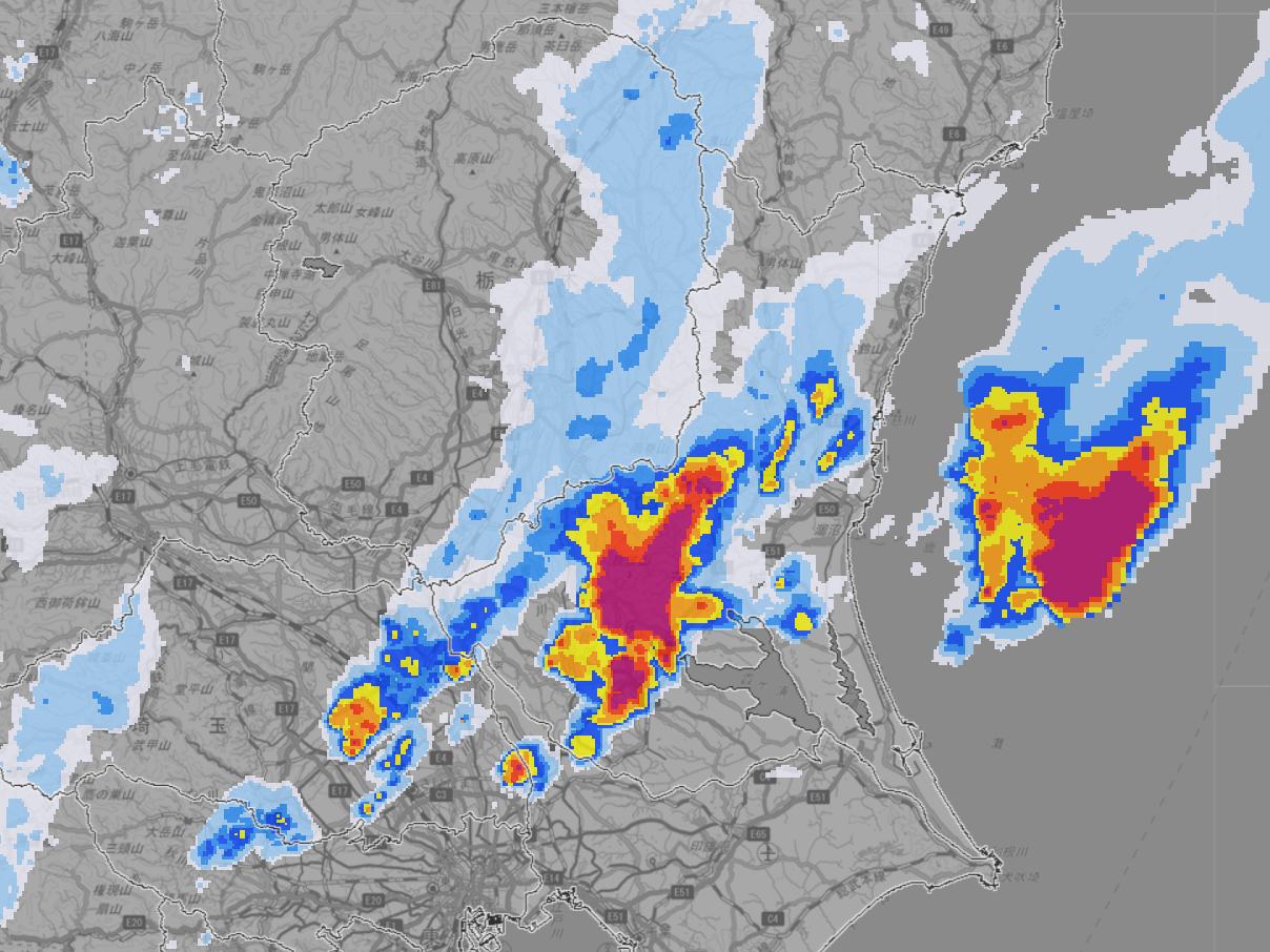 千葉県千葉市中央区 58.5mm/h (13:34)