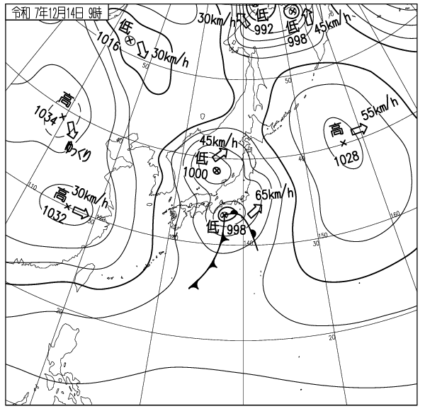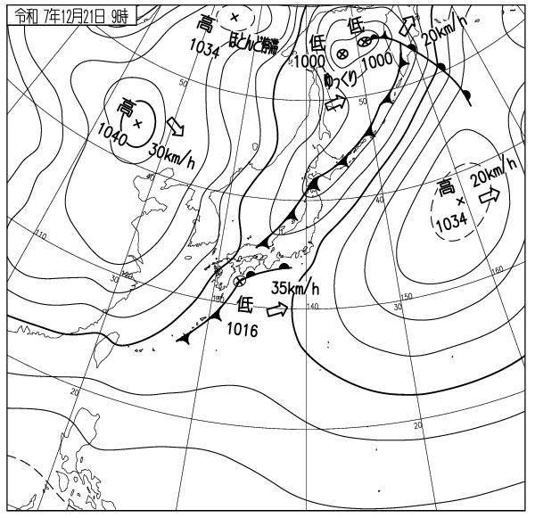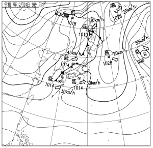 低気圧が急発達しながら日本列島を通過し、急速に冬型の気圧配置に移行。