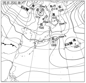 上空寒気トラフのピークは越えたものの冬型の気圧配置が続き