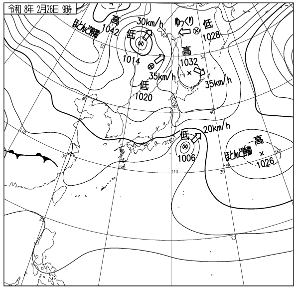 日本海は気圧の谷