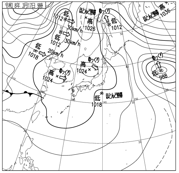 こり低気圧はあまり発達せず陸地から離れて東進したため