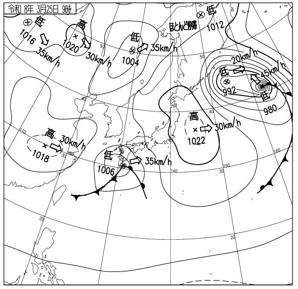 北日本で等圧線混み合う