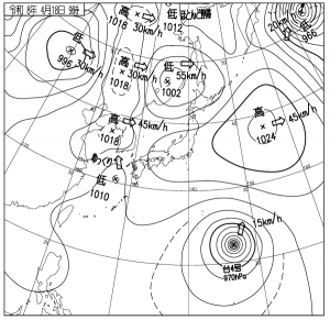 等圧線狭く