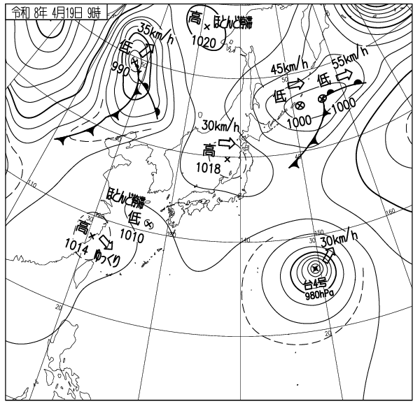 低気圧や前線の通過により各地で民三風が強く、荒れ模様の天気。