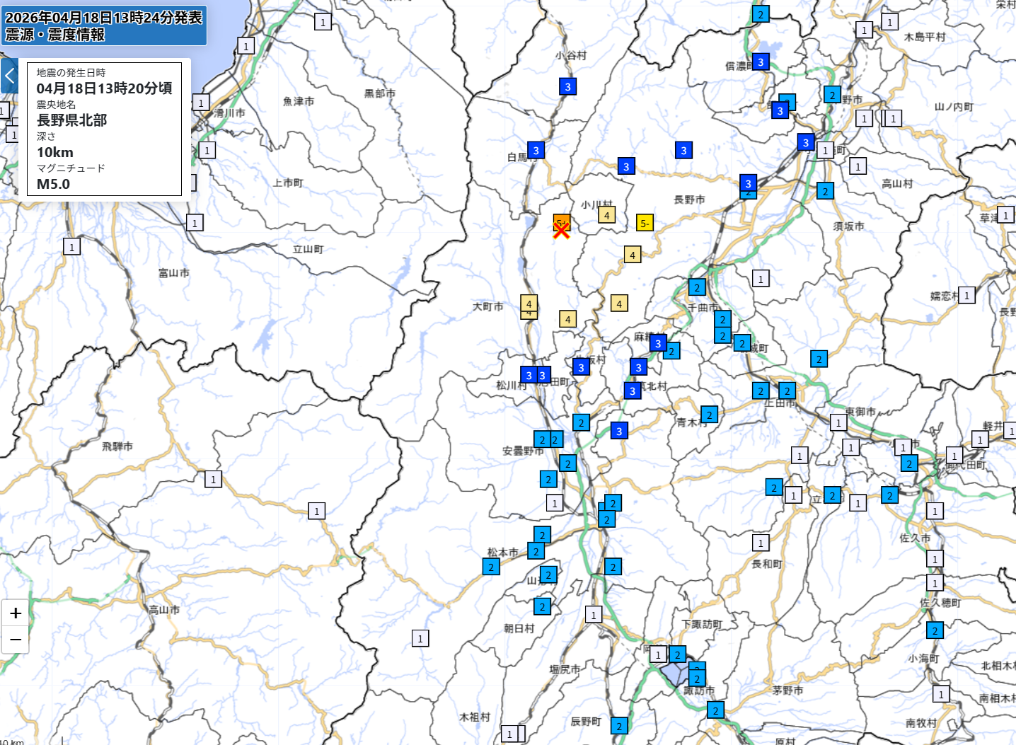 長野で震度5強