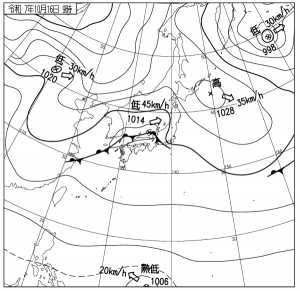 前線を伴った低気圧が通過して広範囲でまとまった雨。