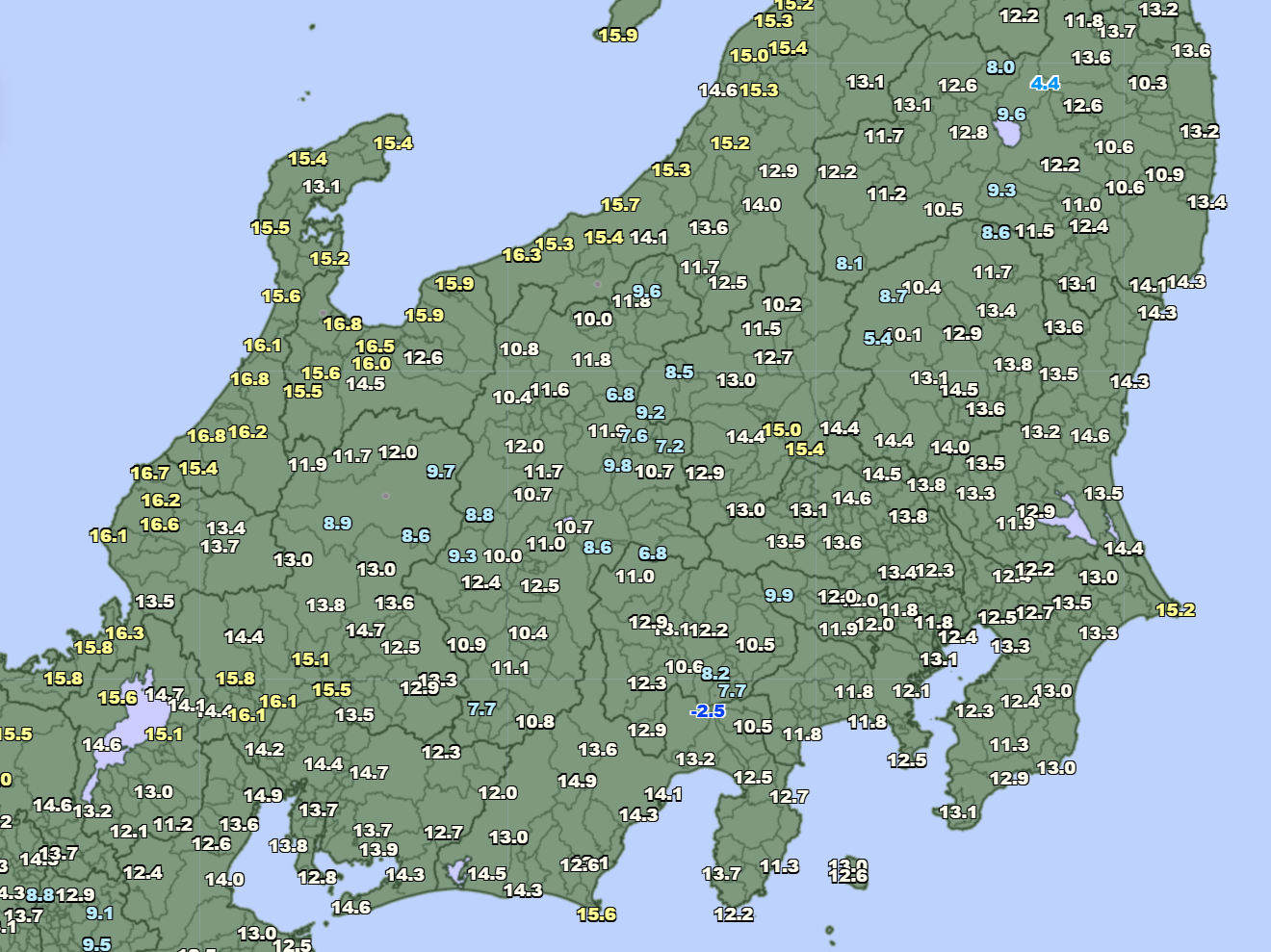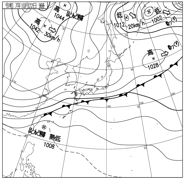 南岸に停滞する前線の雨雲が拡大し、東~西日本の太平洋側沿岸で冷たい雨。