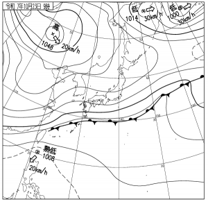 南岸の前線の雨雲はすこし南下したため陽射しの範囲が拡大。