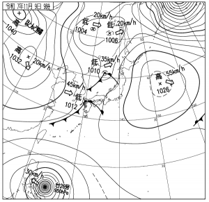 南北に連なる気圧の谷の通過に伴い、陽射しは北海道と九州の一部のみ。