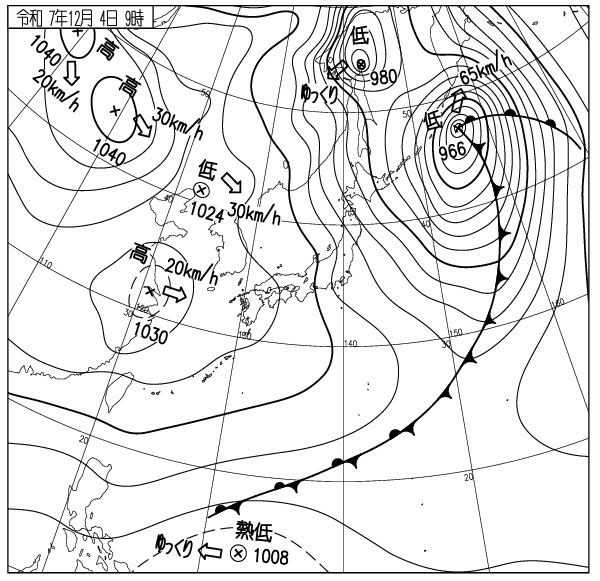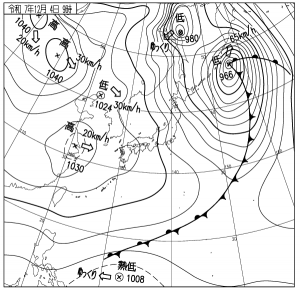 強い冬型の気圧配置により日本海側で降雪、太平洋側は冬晴れ。