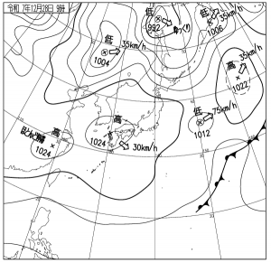 東北以南では移動性高気圧に覆われて西~東日本は穏やかな冬晴れ。