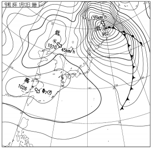 北日本を中心に強い冬型となり、えりも岬で37.3m/sなど大荒れの天気。
