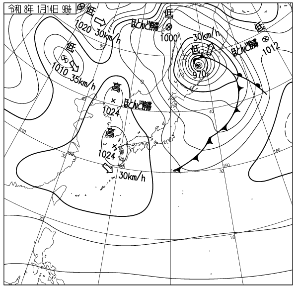 再び北海道の北で低気圧が猛発達し、966hPaの台風並みの勢力。