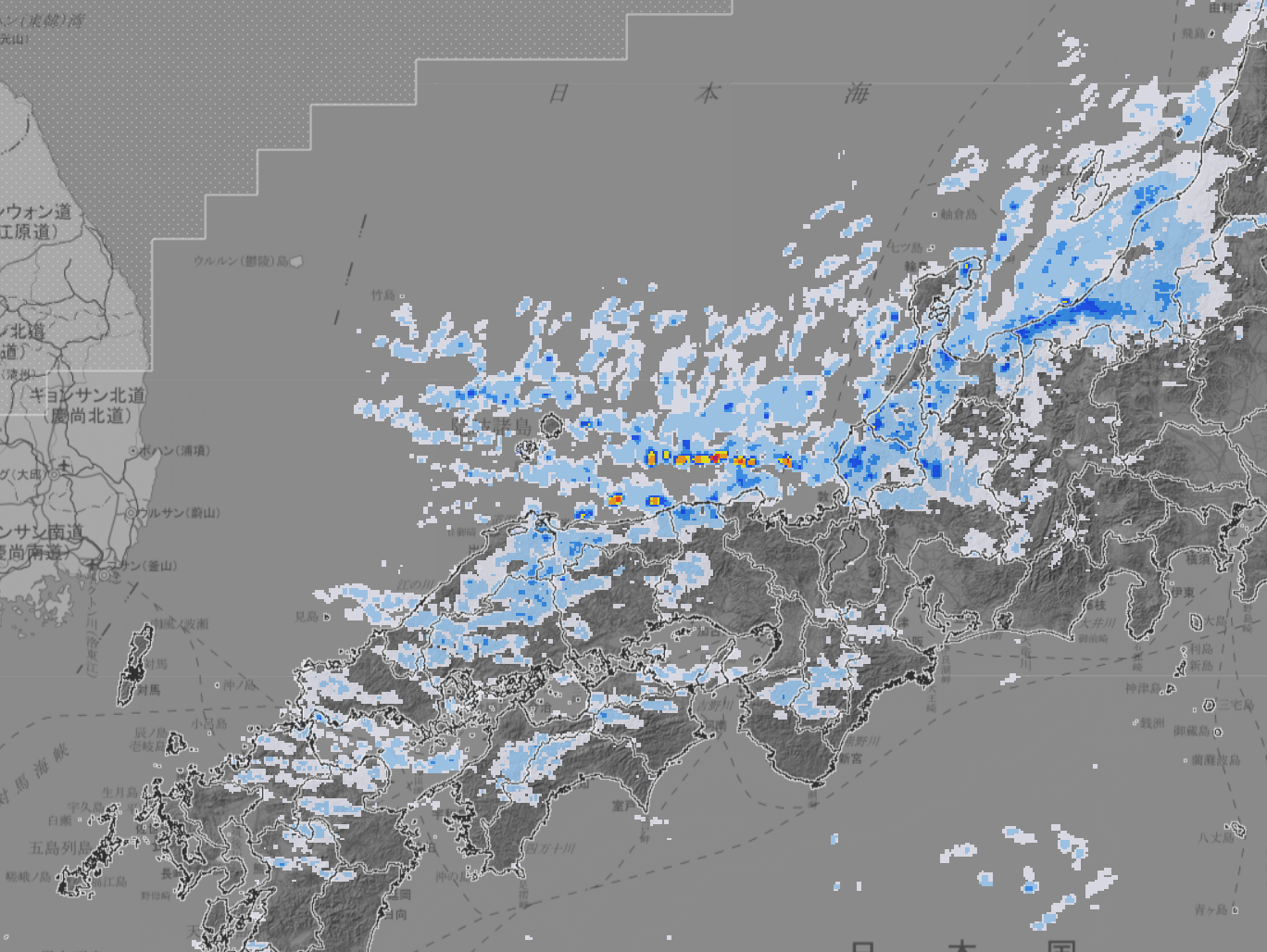 西日本も雪雲 (12:30)