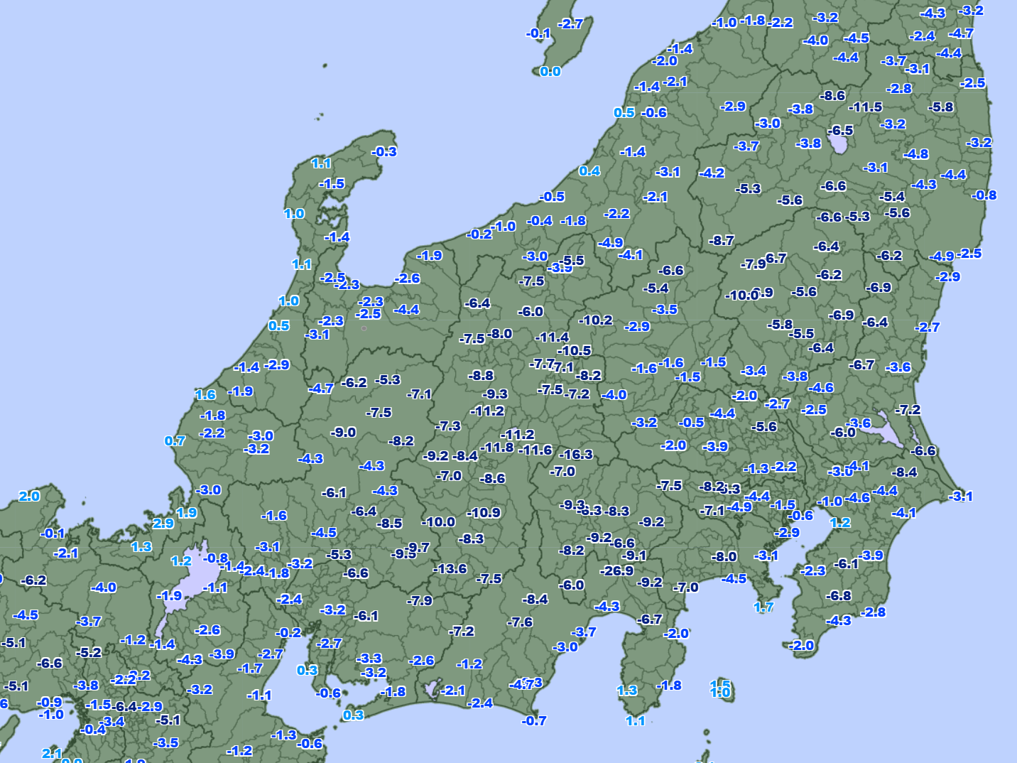 【観測史上最低気温を記録した地点】