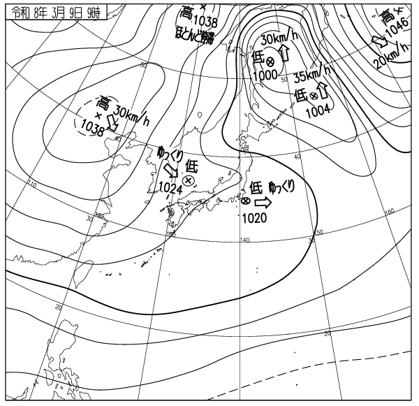 北日本を中心に冬型の気圧配置で東北以北では雲が多めで、道内は所々で降雪。