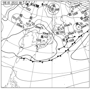 低気圧が急発達して、北日本を中心に荒れ模様の天気。 北海道や東北北部では大雪となり、北海道美瑛町では24時間降雪量は40cm。 最大瞬間風速はえりも岬で36.9m/s、宮城県女川町で28.4m/s