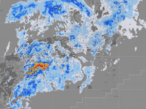 高知県香美市繁藤で98.0mm/h、高知市で85mm/hの猛烈な雨。