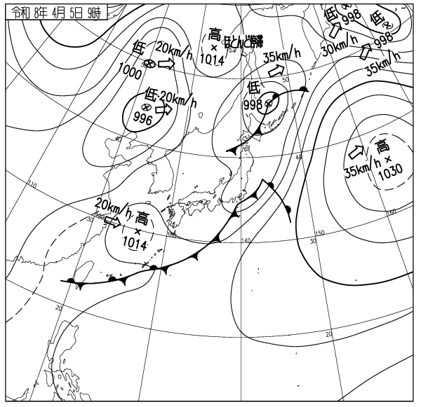 春の嵐をもたらした低気圧や前線は東の海上に離れ、