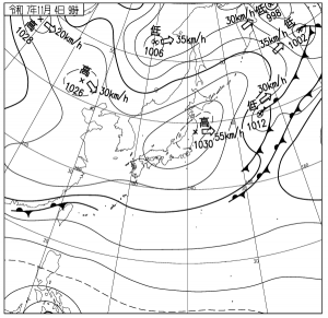 オホーツク海で低気圧が発達して北日本中心に冬型の気圧配置。