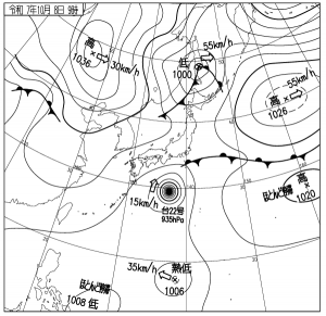 台風15号は午前1時頃に高知県宿毛市付近に上陸したあと、