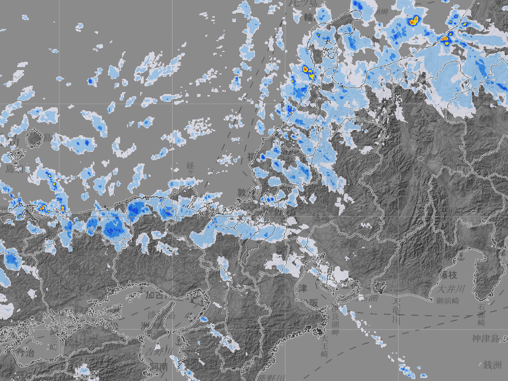 山陰から東北にかけての日本海側は雨雲や雪雲がかかりしぐれ模様。