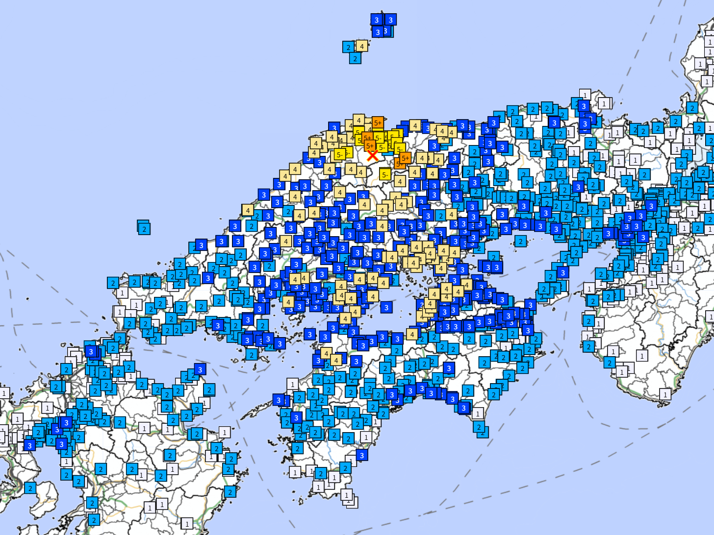 鳥取島根で震度5強